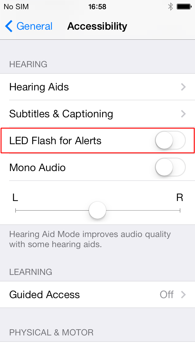 - Tap the toggle switch ‘LED Flash for Alerts’.