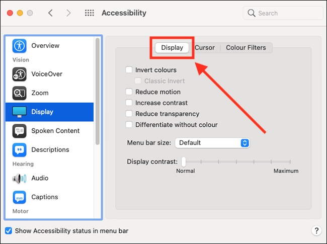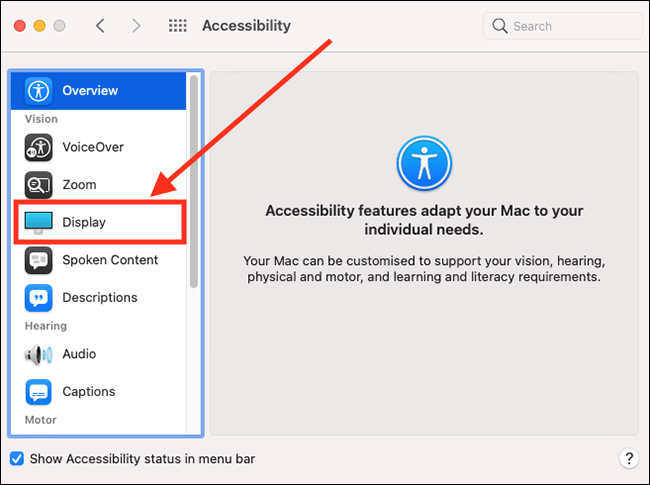 On the Accessibility screen, select Display in the left column.