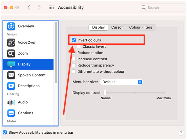 How to invert the display colours in macOS 11 Big Sur