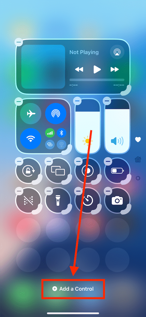 3. To add new items to the Control Centre, tap the Add a Control button at the bottom of the screen.