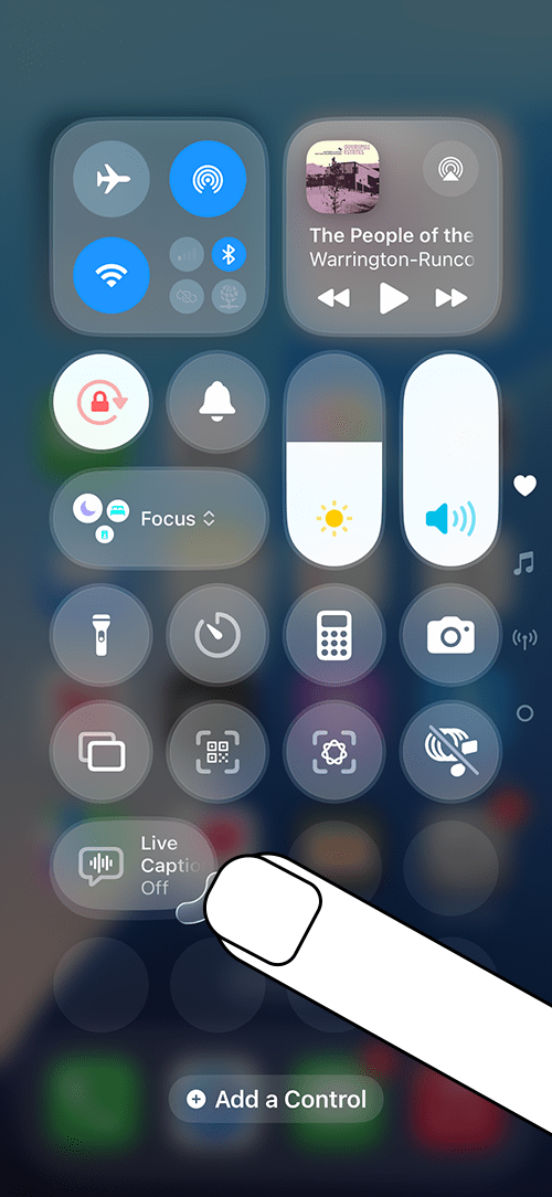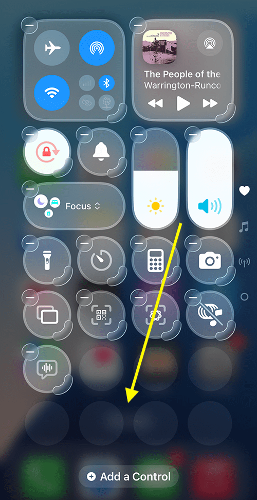 3. To add new items to the Control Centre, tap the Add a Control button at the bottom of the screen.