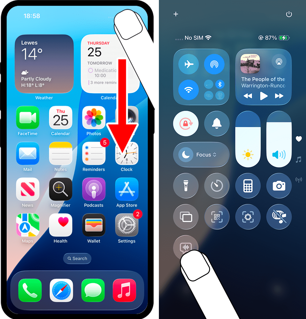 1. To access the Control Centre, swipe down from the top-right corner of your device.