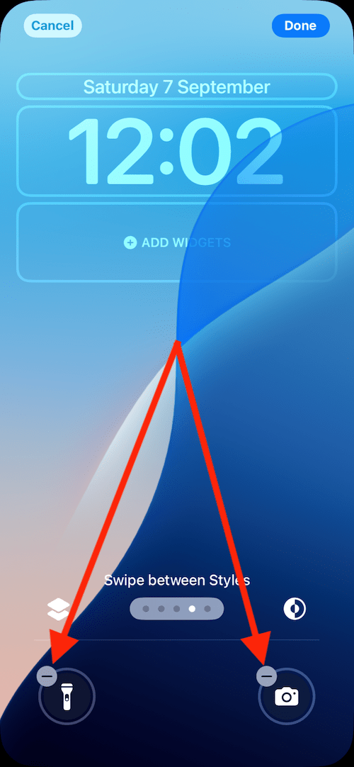 4. Tap the – (minus) button/s shown next to the Torch and Camera buttons.
