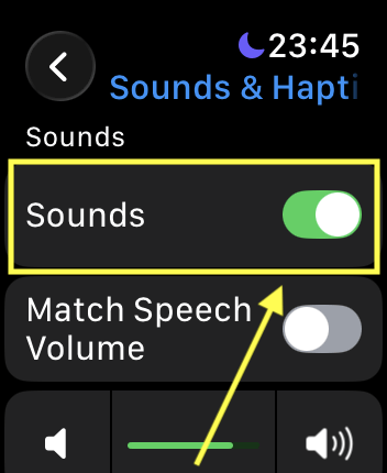 15. If you don't want to hear audio feedback as you navigate your Apple Watch using VoiceOver, tap the toggle switch for Sounds to turn it off.
