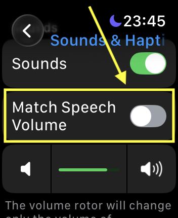 17. If you would prefer to set a custom volume level for sounds, make sure the Match Speech Volume toggle switch is set to Off, then adjust the volume slider to set the sound levels.