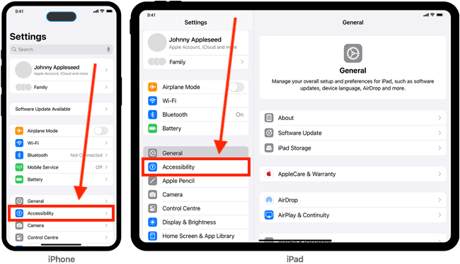 on your Home screen to open the Settings app. Scroll down and tap Accessibility.