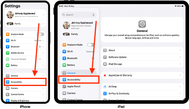on your Home screen to open the Settings app. Scroll down and tap Accessibility.