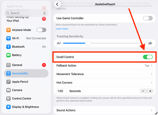 13. On the next page, you can choose between Tap (the default setting) or Pause Dwell. Selecting Pause Dwell can help if you find yourself clicking twice on icons or buttons by mistake.