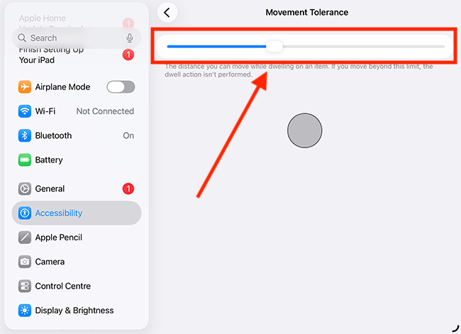 15. On the next page, adjust the slider. The grey circle will indicate how far you can move the pointer before a dwell action is cancelled.