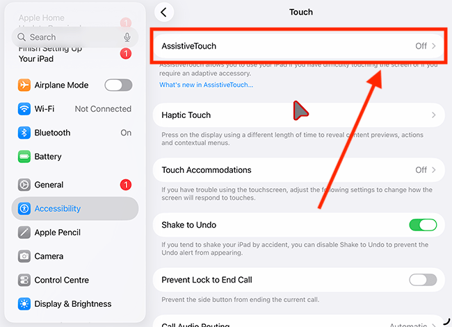 3. On the Touch screen, tap or click AssistiveTouch.
