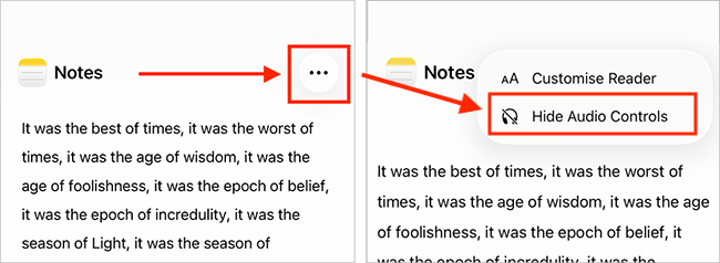 13. If you would like to hide the playback controls, tap the ellipsis button ( … ) in the top-right and select Hide Audio Controls.