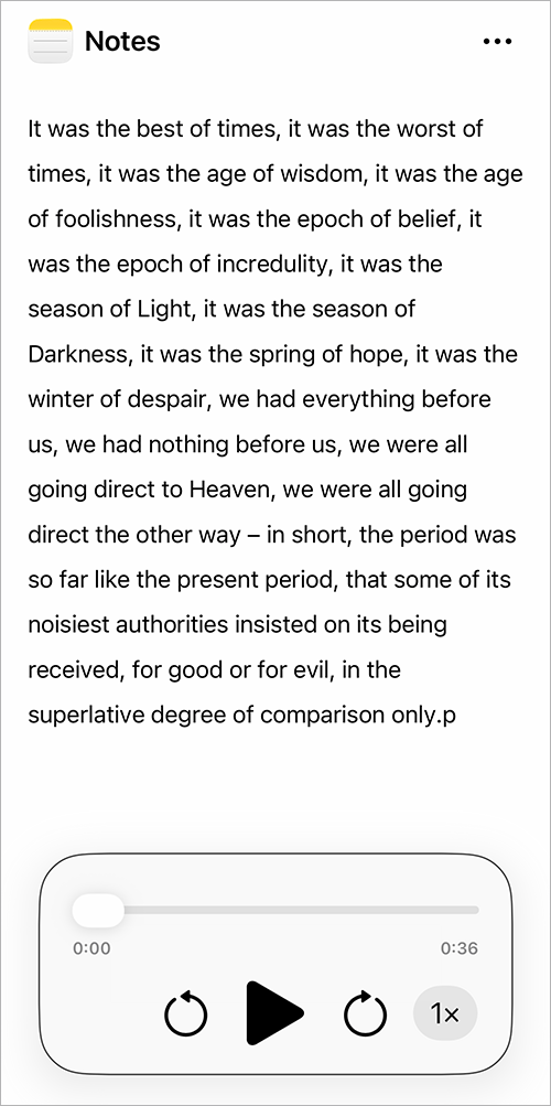 11. To skip forward or backward by 10 seconds, use the arrows on either side of the Play button. You can also use the slider above the Play button to navigate through the text.