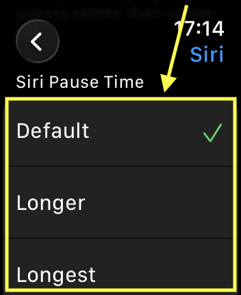 15. In the Siri Pause Time section, choose from Default, Longer, and Longest.