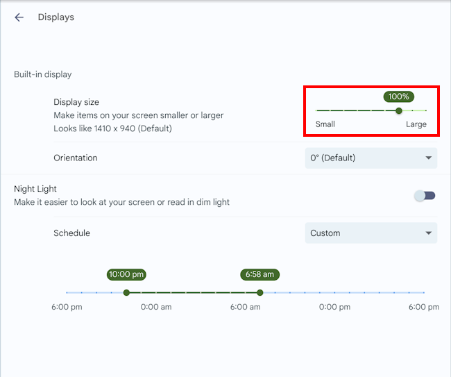 4. Use the Display size slider to adjust the size of text and icons. Move it to the left to make them smaller or to the right to make them larger.