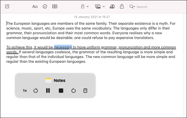 14. Highlight a piece of text or place your cursor where you would like to start reading from. Press the keyboard shortcut for launching Speak Selection – by default, this is Option (Alt) + Esc.