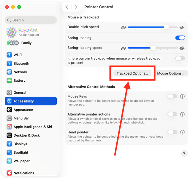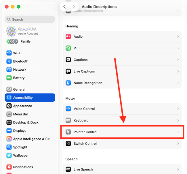 3. Select Pointer Control from the list of Accessibilty options on the right.
