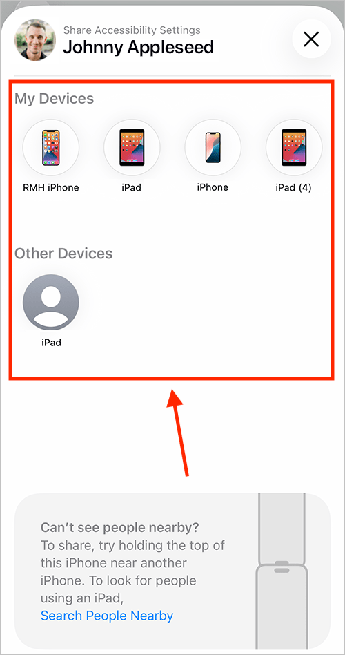 6. When you have finished, you can stop sharing your accessibility settings by: