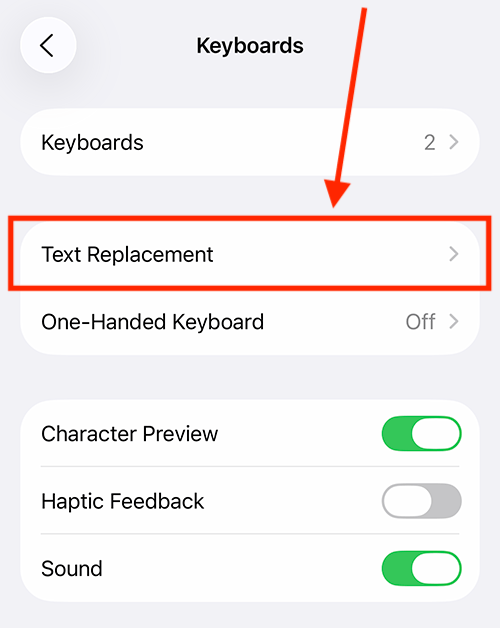 This section gives you step by step instructions on how to setup and use Text Replacement shortcuts in Apple iOS 26, with pictures of the screens to help.