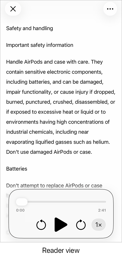 17. To exit Reader mode and return to the Magnifier, tap the X button in the top-left.