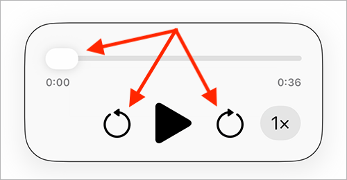 14. To skip forward or backward by 10 seconds, use the arrows on either side of the Play button. You can also use the slider above the Play button to navigate through the text.