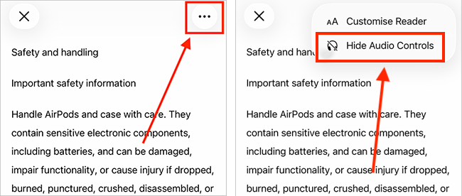 16. If you would like to hide the playback controls, tap the ellipsis button ( … ) in the top-right and select Hide Audio Controls.
